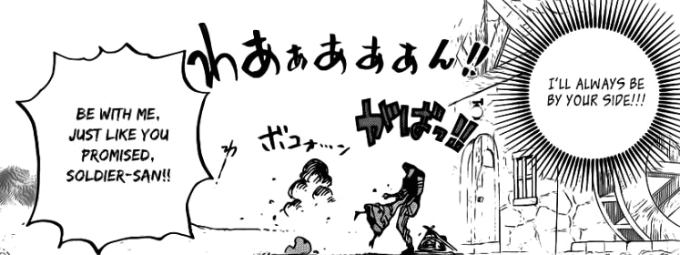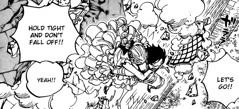 Chapitre de transition mignon comme tout :3 Même si c’est peu triste de devoir dire adieu à Kyros (•︵•) Cela étant dit, il n’avait malheureusement rien à faire dans l’équipage de Luffy. Au contraire, sa place se situe aux cotés de sa fille chérie Rebecca <3 Et leurs retrouvailles sont plutôt touchantes (à défaut d’être bouleversantes) ^^ Pendant un moment, je me suis même demandé si Rebecca n’allait pas faire un bout de chemin avec Luffy mais ce ce sera pas le cas.