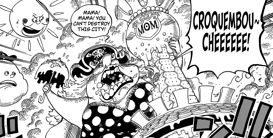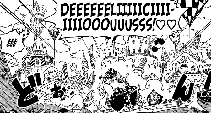 Hm…One Piece m’ennuie à nouveau -_- Ou plutôt –> je n’arrive plus à m’enthousiasmer pour le nouvel arc qui se profile. Qu’il s’agisse de la famille Vinsmoke et de leur conflit avec Sanji ou de la bataille (?) qui s’annonce entre la Yonkou Charlotte Linlin et l’équipage du Chapeau de Paille. Qui plus est, je trouve le design de Big Mama un peu trop pittoresque pour être pris au sérieux >__< Elle ne renvoie pas la moindre impression de puissance. Quand bien même son appétit peut la pousser à tuer ses propres fils ._.