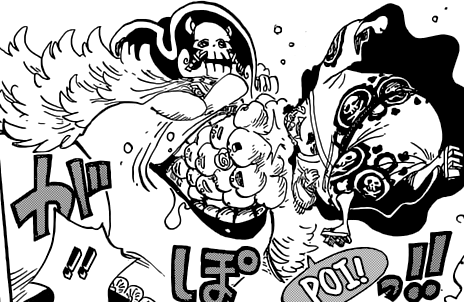 Quoique, il me semble qu’elle lui a retiré 40 années de sa vie mais qu’il n’est pas mort pour autant ! Bizarre ! Et je ne savais pas que Jinbei appartenait au crew de Big Mama (╹o╹) J’imagine qu’elle ne va pas apprécier son futur départ pour la Team Mugiwara xD Bref ! Vu les crises de rage incontrôlables dans lesquelles Big Mama semble parfois plongée, je comprends mieux pourquoi Caesar est aussi recherché —> ses expériences ont dû rendre Charlotte dépendante de la même manière qu’elles ont rendu dépendants les enfants géants ! Hm…