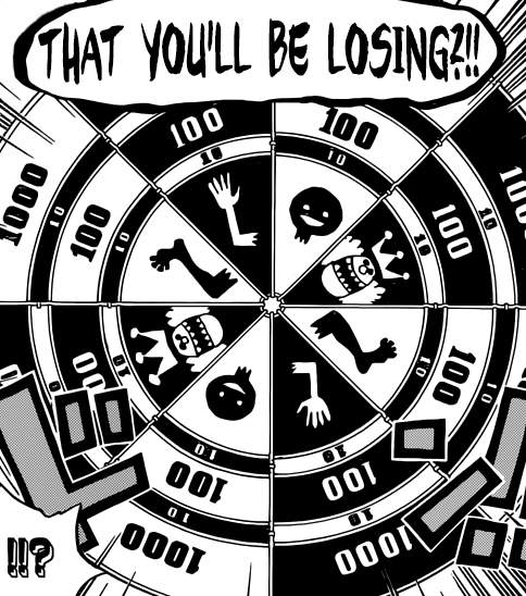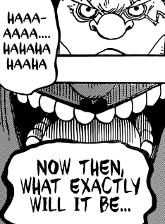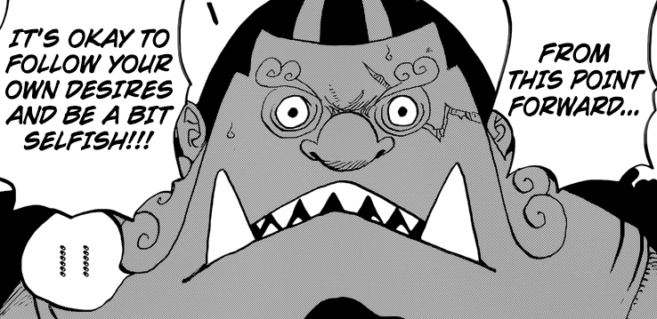 Anyway, Jinbei, après avoir quitté son équipage, en a fait de même avec Big Mom. Problème —> celle-ci compte bien le priver de l’un de ses membres en guise de punition. Ça peut être un bras, une jambe…ou la tête x_x J’imagine que c’est lui qui attend Luffy sur Cake Island à la fin ! Hm…j’espère qu’un évènement imprévu a fait qu’il a pu s’en sortir intact u_u’ Peut-être que le symbole « Big Mama » signifie qu’il devra se battre contre la Kaidou ? Auquel cas, il y a moyen pour qu’elle le laisse partir s’il offre un duel acceptable… Wait & see !