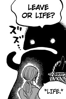 Anyway ! Ce chapitre est « sauvé » par la révélation de la nature du fruit de Big Mom –> le « Soul Soul Fruit » ! Lequel lui permet d’absorber une partie des âmes d’autant de personnes qu’elles souhaite en vue de les redistribuer à des objets inanimés et autres animaux ! Objectif —> Lever l’armée la plus puissante au monde ! Mis à part cette découverte, l’impression d’avoir affaire à un arc lent et sans impact demeure <_< J’espère que nous n’allons pas avoir le droit à la présentation de toute la famille de Big Mom ! Surtout si c’est pour avoir affaire à des chara design aussi laids que celui de Charlotte Brûlée et son fruit du miroir >o< Ha, et j’espère que la belle et intrépide Carrot sera bientôt libérée (•︵•)