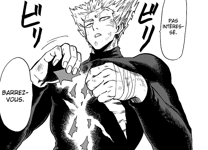 Petite parenthèse avant de faire le compte-rendu de ce chapitre : la scantrad de One Punch Man est un BORDEL SANS NOM ! Figurez-vous que ce chapitre vient d’arriver sur un site de scan français et qu’il n’est toujours pas dispo sur le site US où je vais depuis peu. Sachant que les autres sites de scantrad US ont un chapitre de retard par rapport à ce même référent. Et là où ça devient comique, c’est que le chapitre 87 de OPM n’est PAS disponible sur le site FR. Autrement dit, ils sont « tout bêtement » passés du 86 au 88 sans le moindre stress. Bref, autant dire que la scantrad de One Punch Man est encore TRÈS amatrice. Espérons que le succès de l’anime résoude ce problème <_<