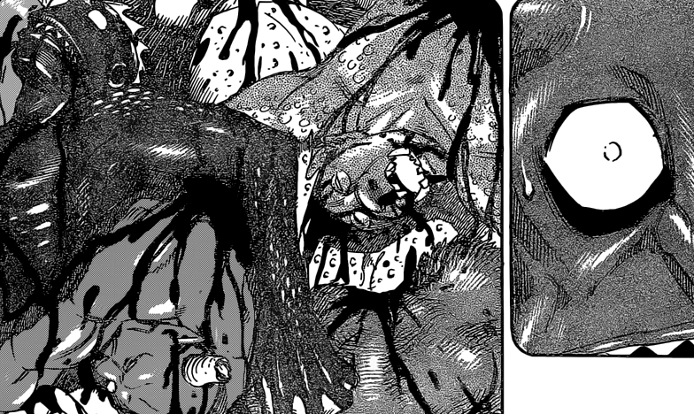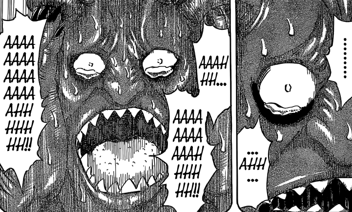 Quoiqu’il en soit, j’arrive déjà à deviner la fin. Komatsu va entrer en « Demon Mode » et préparer à Neo le plat ultime qui comblera le vide béant de son coeur. Acacia redeviendra lui-même avant de partir rejoindre sa bien aimée Frohze dans l’au-delà. Enfin, Ichiryu sera ressuscité et fera la paix avec son petit frère Midora qu’il avait choisi d’épargner durant leur redoutable «combat à mort ». Rappelons que c’est le Blue Nitro AIR qui a tué Ichiryu alors que celui-ci se trouvait dans un état critique. D’où ce magnifique retour de Karma –> AIR s’est d’ores et déjà fait dévorer par Neo :3 Huhuhu.