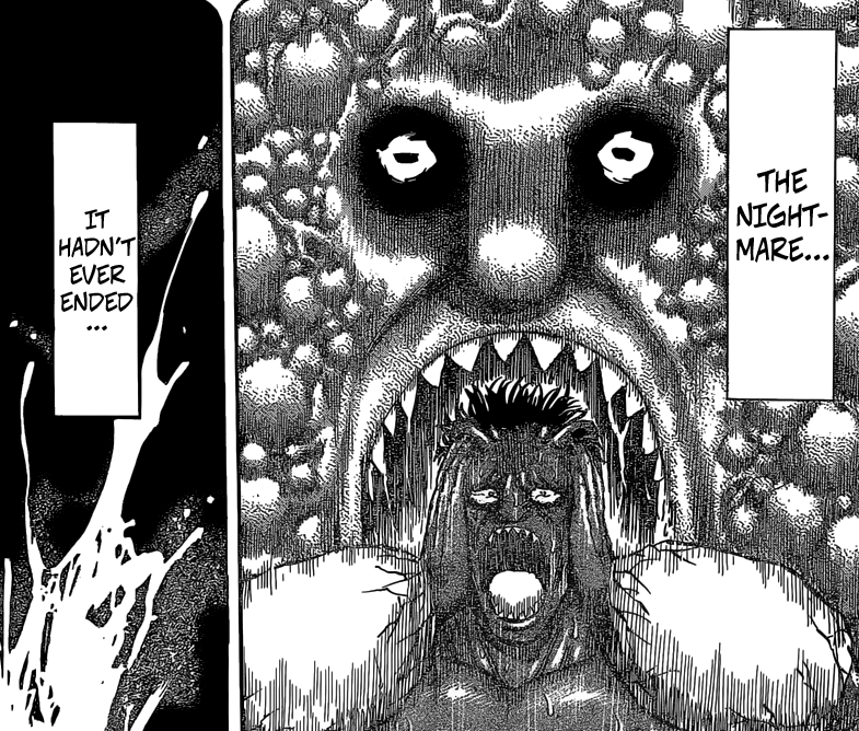L’état de providence aura duré un chapitre -_- Matsutushi aurait dû s’étendre davantagesur le passif de Neo et sa personnalité morbide, glauque et terrifiante au possible. Au lieu de ça, il boucle le flashback en 12 pages et prépare déjà la dernière ligne droite. À savoir le combat final contre Neo et Acacia (du moins ce qu’il en reste). Autant dire que je suis loin d’être hypé <_< J’espère au moins qu’on verra Zebra à l’action et que sa mise en avant s’étendra sur plusieurs chapitres.