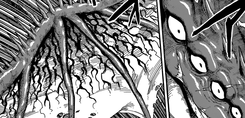Et dire que Zebra se retrouve coincé à affronter Joa avec Coco et Sunny >__< Laquelle est inférieure en puissance à Midora et bien évidemment à Neo. Quelle misère -_-‘ Anyway, j’ai hâte de voir comment les 8 Rois vont chambouler la partie ! Sachant que Derous, le Roi Dragon, a l’air HYPER OP *o* Puis ce character-design de folie <3 Un mix entre un dragon géant et le monstre à tête de seiche Cthulhu (⌐■_■) Dommage qu’il n’ait pas eu le droit à son arc en bonne et due forme T_T La Shueisha devrait changer leur politique éditoriale pour les shonen « impopulaires » mais qui restent de qualité. Un peu comme Toriko par exemple…