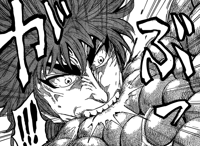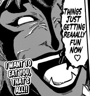 Youhou ! On voit ENFIN le Roi Dragon \^o^/ Il était temps… Sachant que Aimaru (qui a lui-aussi un démon de l’Appétit) et Brunch se dirigent tout droit vers le hors-d’oeuvre du plat d’Acacia —> Center (-‸ლ) Et Toriko a beau avoir été bâclé tout du long de ces derniers mois, il n’empêche que Mitsutoshi Shimabukuro fait au moins l’effort de nous offrir une belle fin ! Ce qui, ma foi, semble un pari réussi pour l’instant… Tant bien même j’espère que Toriko ne parviendra pas à bout de Neo tout seule -_-‘ Qu’importe qu’il dispose de son Blue Demon et de son God Demon qui ne sont toujours pas intervenus…