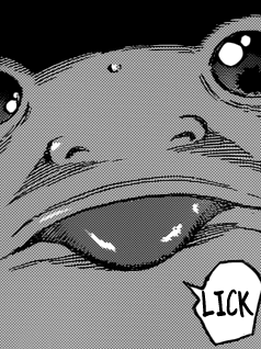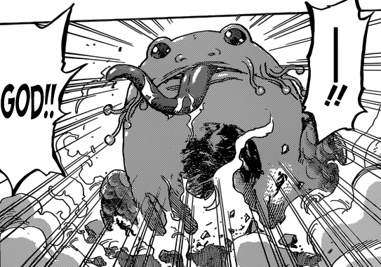 Cette grenouille est tout simplement INTESTABLE ! Il n’y a qu’à voir la manière dont se fait balader Neo. Son lynchage est tellement à sens unique que les deux Blue Nitros restants tentent de lui venir en aide ! Malheureusement pour eux, Toriko et ses démons en ont décidé autrement ( ▔∀▔ ) Quant aux déceptions de la semaine, il s’agit sans l’ombre d’un doute du trio Zebra/Coco/Sunny –> vaincus hors-manga par Joie ._. Pour dire, Zebra m’a tellement déçu que j’ai décidé de ne plus le supporter ! Du moins tant qu’il ne m’aura pas montré qu’il peut être aussi OP que Toriko ou Starjune… Lequel devrait au passage dévoiler l’identité de son père d’ici la semaine prochaine ! Son père à lui et Toriko ! Je parie 10 cacahuètes sur Midora \^o^/