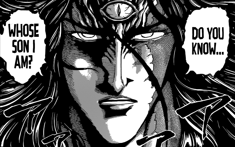 Ce chapitre (╹o╹) Décidément, entre un Hunter X Hunter dingue comme pas deux et ce Toriko absolument DANTESQUE, nous sommes plus que gâtés <3 Qui aurait cru que le Blue Demon de Toriko serait aussi OP ? Même Neo n’est pas parvenu à prendre l’ascendant sur lui ! C’est dire sa puissance \o/ Pour autant, je ne suis qu’à moitié surpris vu que nous l’avions déjà vu se battre à armes égales contre l’un des huit Rois —>  Heracles, le Monarque Cheval (⌐■_■) Lequel affiche un niveau de capture à 6200… Un score impressionnant et qui fait pourtant pâle figure comparé à la puissance du véritable combattant OP —> God-sama xDD