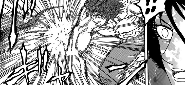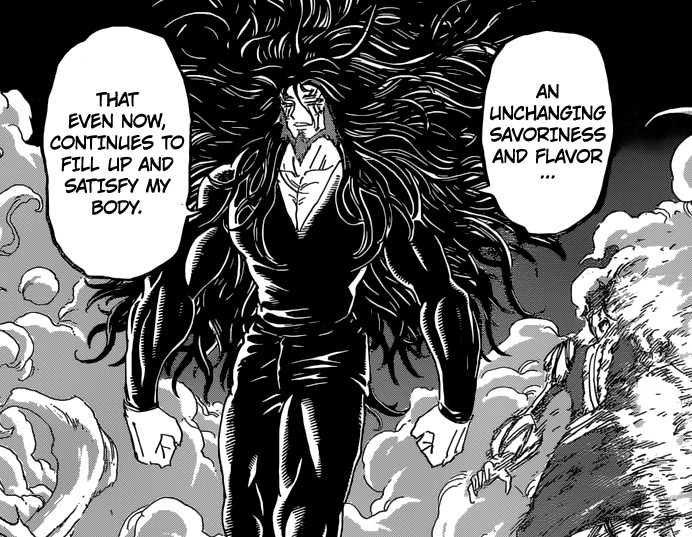 Il faut dire que l’auteur est parvenu à rendre ce type antipathique au possible ! De « Suprême Gentil », Acacia s’est révèle être une « Suprême Pourriture » -_- Pour autant, sa puissance est sans commune mesure malgré le fait que Midora l’ait envoyé balader de haut en large sur ce chapitre ! Hâte de voir son duo avec Toriko…voire Starjun ?! Il me semble que ce dernier n’a pas encore été mis hors-combat (-‸ლ) Ce serait l’occasion rêvée pour apprendre que le père des deux frères…n’est autre que Midora himself (⌐■_■) Et c’est là qu’on nous révèle que leur mère est Froese et que Midora la culbutait en cachette du temps de sa jeunesse xD Ce serait tellement magique <3
