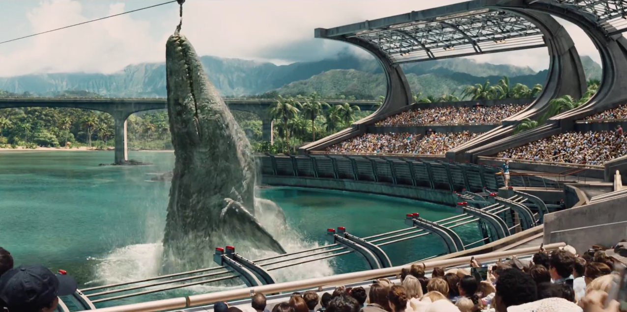 Au programme : safari au beau milieu d’un troupeau de Galliminus, croisière sur une rivière préhistorique permettant d’admirer différents herbivores vaquant à leurs occupations, attraction de la « Gyrosphere » histoire de côtoyer des diplodocus au plus près, ou encore séquence « frisson » au parc aquatique avec la dégustation d’un requin blanc par le redoutable Mosasaurus.