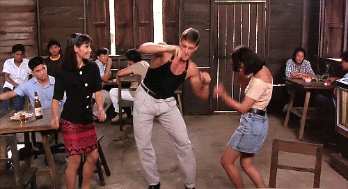 Un peu comme Will Smith prouvant qu’il savait encore danser la « Carlton Dance », Jean-Claude a prouvé qu’il savait encore danser la « VD Dance ». « VD » pour « Van Damme » (⌐■_■) Piqure de rappel : dans le film culte « Kickboxer », il y a une scène où JC se met à danser Like a Boss et accompagné de deux belles thaïlandaises…ce qui plait moyennement aux indigènes locaux qui décident de lui apprendre une leçon. HA HA ! Laissez-moi rire…