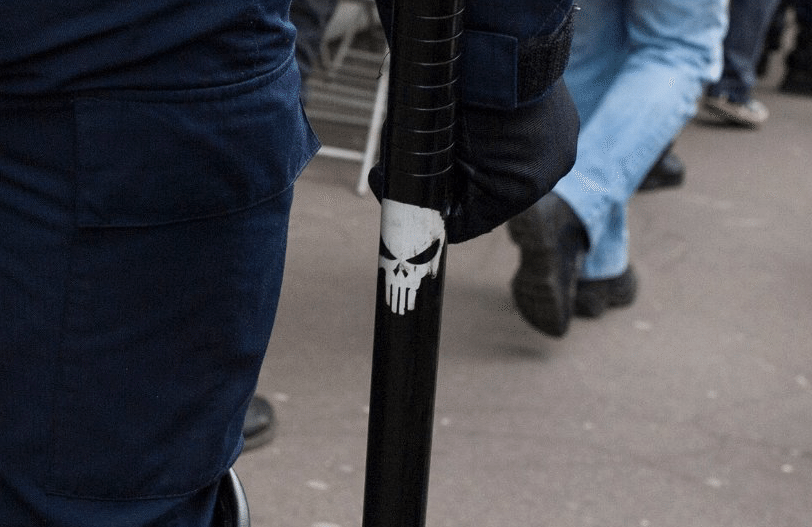 C’est l’image qui fait le tour des réseaux sociaux en ce moment ._. Et autant dire qu’elle ne risque pas d’apaiser les tension existantes entre policiers d’un coté et manifestants contre la Loi Travail de l’autre ! D’autant plus que le symbole est loquace ! Prise à l’envolée lors de la manif du 14 avril dernier, cette photo dévoile la matraque d’un policier affublée du logo…du Punisher xD Pour les noobs n’ayant pas lu le comics et, plus impardonnable encore, n’ayant pas regardé la dernière saison de Daredevil, le Punisher, c’est ça !