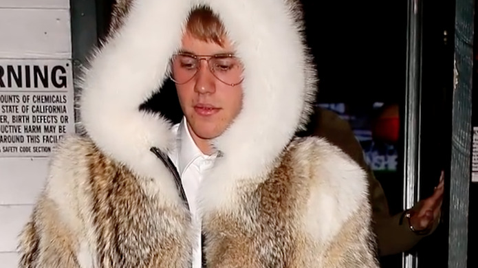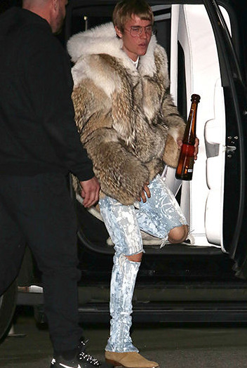 Et dire que j’ai cru qu’il avait changé… Qu’est-ce que je peux être naïf -_- Les gens ne changent pas ! Surtout en ce qui concerne les gros défauts. Se persuader du contraire revient à se précipiter droit dans le mur. Souvenez-vous en si vous êtes en couple avec la mauvaise personne et que vous pensez qu’elle s’améliorera avec le temps qui passe —> NOPE ! Vous perdez votre temps xD Anyway… Alors qu’il se rendait à la discothèque huppée du Hyde à Los Angeles, Justin Bieber a été aperçu avec un gros manteau en fourrure sur lui… Et l’air ravi u_u Un papparazi de TMZ lui a alors demandé si c’était de la vraie fourrure et la réponse du canadien a été on-ne-peut-plus explicite —> « De la put*** de vraie mon gars ! ». Yep, Justin est un connard ^_^