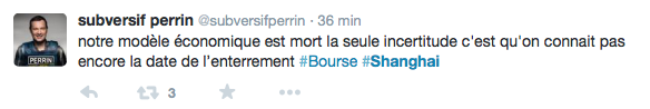 Pour autant, il semblerait que les politiques européens n’aient pas appris la leçon <_< François Hollande en tête, puisque celui-ci ne cesse de rassurer les médias à coups de « Meuh non ! Notre économie n’est pas SI liée que ça à celle de la Chine ! Tout va bien wesh ! ». Oui, oui, tout va bien. En espérant que Shanghaï prenne les mesures adéquates histoire de prouver que l’économie chinoise n’est pas en si mauvaise santé que ça et qu’on ne retombe pas, à nouveau, sous le sceptre d’une récession. Autant dire que c’est mal parti.