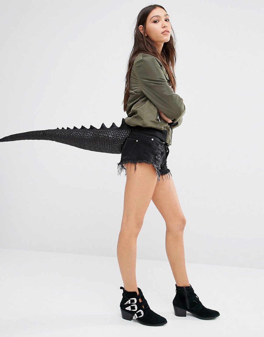 Ok. Remarquez, il vaut vaut mieux que les filles se prennent de passion pour ce genre d’accessoire plutôt que de suivre la « tendance » de l’Ab Crack ! Dans le premier cas, ça peut être rigolo et original selon l’évènement (ou non d’ailleurs). Dans l’autre, ça peut virer rapidement à l’anorexie si on ne fait pas gare <_< Dans tous les cas, cette Queue de Dinosaure tombe à point nommé tant cela fait longtemps que nous n’avions pas eu de petite folie en la matière ! Merci Asos \^o^/