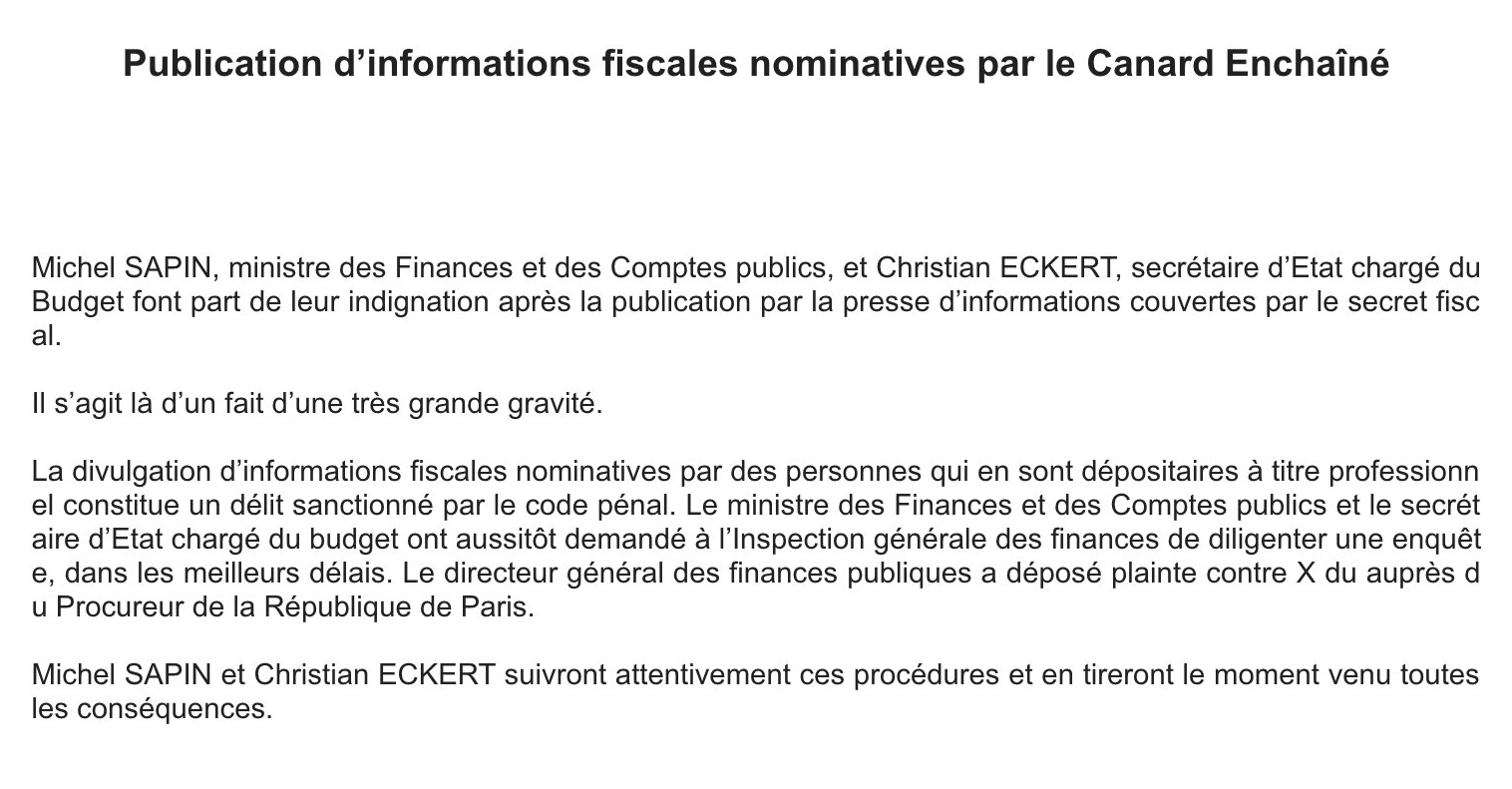 Au final, cette astuce permet de minorer l’ISF dès lors que son revenu imposable (supérieur à 1 million d’euros) dépasse le plafond des 75 %. Ce qui explique pourquoi les 50 personnes les plus riches de France payent quasiment rien au fisc français. Ce qui fait que nous nous retrouvons avec une grosse réduction sur l’ISF de 90 % –> soit 199 millions d’euros en moins pour l’année 2015. Hollande a fait encore mieux que le bouclier fiscal de Nicolas Sarkozy (⌐■_■) Cerise sur le gâteau : suite à cette révélation du Canard Enchainé, le ministères de l’Économie et des Finances (Bercy) a décidé de porter plainte contre le journal et le lanceur d’alerte qui a permis cette révélation. Dans le genre politique clientéliste à peine voilée mais non assumée… Au moins, Alain Juppé a été clair dans son programme présidentiel —> Suppression de l’ISF dès 2018 <_<