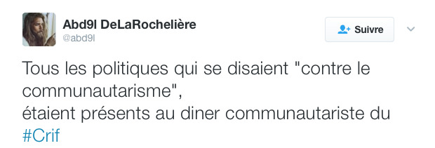Le pire, c’est qu’un discours annuel est à chaque fois donné à l’occasion de ce diner. Une sorte de moratoire géopolitique pro-état d’Israël qui donne la direction à suivre pour l’année à venir. C’est un peu étrange, tout de même u_u Peut-être que Fillon, Macron et Hamon y participent pour se garantir un « vote juif ». Et encore, je n’ai pas l’impression que les Français juifs se sentent représentés à travers le Crif ! Certes, je conçois la nécessité de lutter contre le racisme mais il faut le faire systématique et universelle. En aucun cas de façon ciblée. Autrement, cela donne l’impression d’une politique clientéliste. Je citerai par exemple la communauté Asiatique qui, depuis longtemps, a l’impression de ne pas être entendue dans sa lutte contre les discriminations à son égard. Enfin bref…