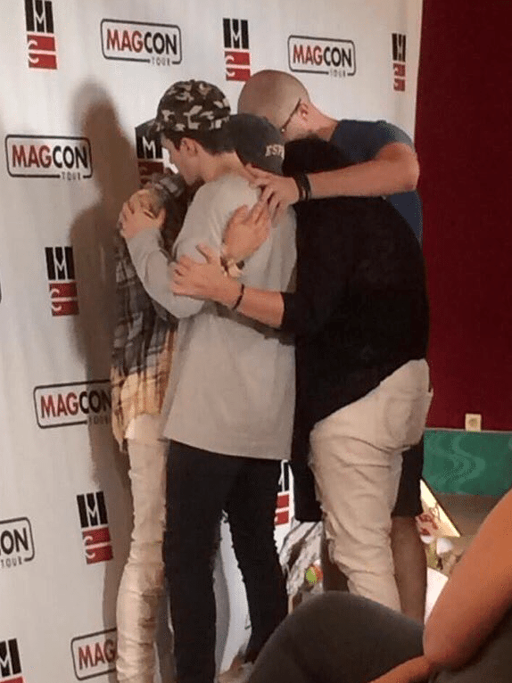 Bien au contraire, certaines ont redoublé de ferveur, poussant d’autres fans en plein sur les barrières . De là, mouvement de panique et Cameron qui craque, annule son show et vient se réconforter dans les bras du poto Aaron Carpenter. Et on ne retiendra que ça de cette Magcon Paris (⌐■_■) Soit une très mauvaise image des fans français qui ne fait que confirmer leur manque flagrant de savoir-vivre et de respect à l’égard de leurs idoles. Il n’y a qu’à se rappeler ce qui était arrivé à Rihanna à Gare du Nord et au Mandarin Oriental…