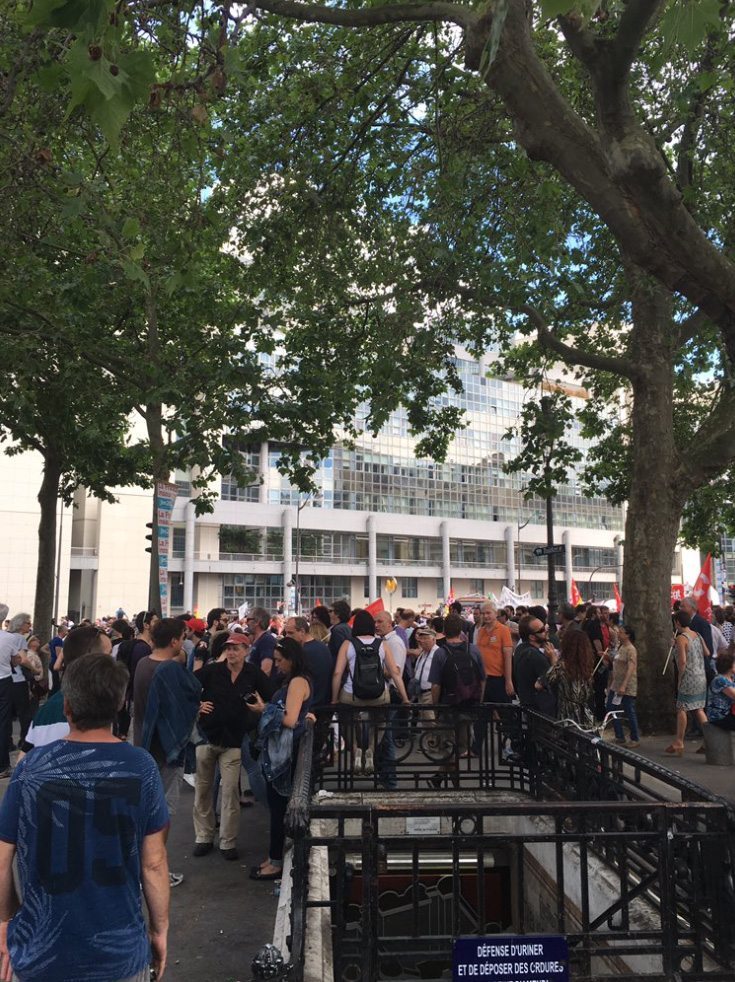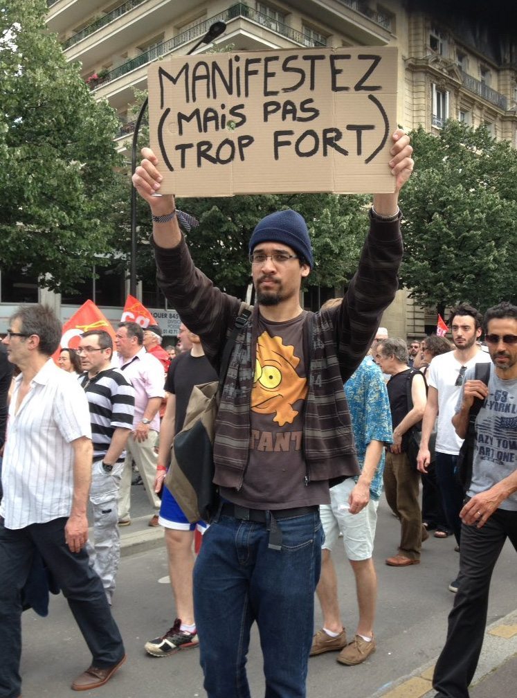 Je plains les manifestants qui ont dû tourner en rond empaquetés comme des saumons ._. Et cela sous un soleil ardent ! Il n’empêche qu’elle aura bel et bien eu lieu cette manif ! En forme de parcours hyper-sécurisé (les manifestants passent au compte-goutte) mais tout de même ! Quand on repense à Manuel Valls qui n’avait de cesse de claironner qu’aucune manif n’aurait lieu le 23 juin… J’imagine qu’on peut assimiler ce revirement à 180° comme un camouflet public ( ▔∀▔ ) C’est dans des moments comme celui-ci qu’on réalise à quel point le gouvernement est dans une bulle —> ils ne s’attendaient pas du tout à ce que les protestations contre la Loi Travail durent aussi longtemps.