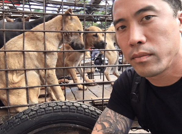 Cette semaine, comme tous les ans, le festival de la viande de chiens s’est déroulé dans la ville de Yulin (sud de la Chine). Soit plus de 10.000 toutous entassés dans des cages exiguës en vue d’être abattus à coups de massue/barre métallique sur la tête (quand ce n’est pas ébouillantés vivants). Ensuite ? Leurs cadavres sont exhibés à même le marché et vendus à des consommateurs peu regardants sur les conditions épouvantables de détention des bêtes. Chaque année, l’horreur prend place ici et ailleurs. Chaque année, les ONG et activistes se révoltent et tentent de mettre fin à la barbarie. Marc Ching est l’un d’entre eux.