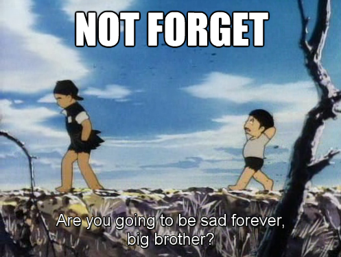 La qualité de Gen, son œuvre majeure, n’est pas tant dans son dessin rugueux mais plutôt dans la force de ses personnages, de leurs émotions et de la violence graphique se dégageant de la catastrophe d’Hiroshima. En partie auto-biographique, Gen retranscrit l’effroi et l’impuissance de l’auteur quand cette bombe, surnommée « Little Boy » par les américains, heurta le sol de la ville. Car n’ayons pas peur des mots : Hiroshima et Nagasaki ont été des génocides et peuvent même être qualifiés de crimes contre l’humanité dans la mesure où un nombre important de civils ont été tués (2/3 des 75 000 victimes tuées sur le coup pour Hiroshima). En n’oubliant pas ceux qui furent contaminés par la suite à cause des radiations.