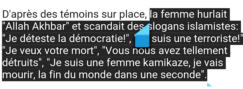 Du fait de la violence graphique des images et vidéos postés sur le net, j’ai choisi de ne pas les montrer. Ce matin, près d’une sortie de la station du métro Oktyabrskoye Pole de la ville de Moscou, une femme brandissant la tête d’un enfant a été signalée par de nombreux témoins. Proférant des propos islamistes et vêtue d’un jihab, le monstre n’a eu de cesse de se revendiquer terroriste tout en menaçant de se faire exploser. Arrêtée peu de temps après, les enquêteurs ont appris que la victime était une fillette de 3/4 ans dont la meurtrière s’est avérée être sa nounou.