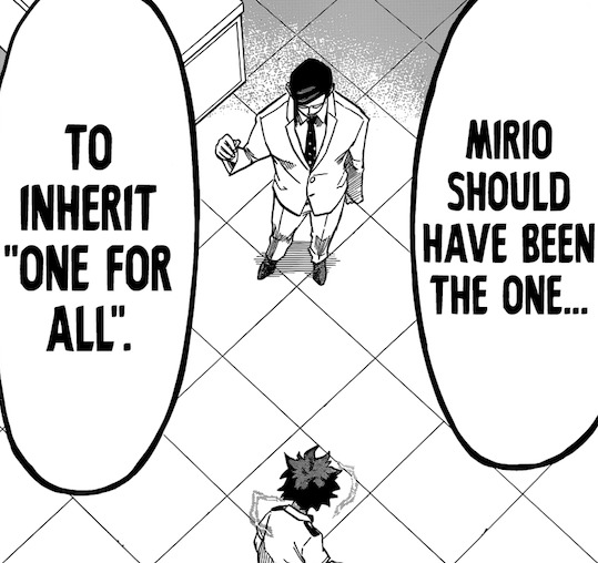 Ok, Nighteye est un fan absolu de All Might xD Du coup, Deku va pouvoir faire son stage sous sa supervision sachant que celui-ci durera un mois au lieu d’une semaine ! Et notre ami aura de nombreuses absences justifiées vu que le stage promet d’être infernal (╹o╹) […] My bad, Nighteye n’a pas approuvé le contrat xD Deku doit d’abord être testé ! Et autant dire que l’ancien sidekick de All Might n’y va pas avec le dos de la cuillère ! « Tu n’es pas digne d’être son successeur, Mirio aurait dû l’être ». Deku serait-il la raison derrière la séparation All Might/Nighteye ? Peut-être… Reste que les mots de Nighteye sont très durs ! Mais empreints d’une part de vérité brute… Objectivement, Mirio dépasse Izuku dans tous les domaines ! Persévérance inclus !