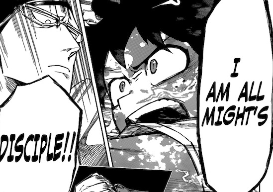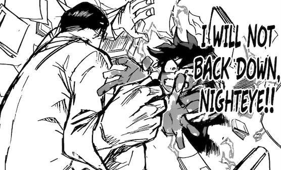 Ok —> Nighteye avait l’intention d’embaucher Deku dès le départ xD Qu’il arrive ou non à se saisir du fameux tampon… Du coup, nous voilà avec notre héros intégré à la team de surveillance et de patrouille de Musutafu ! Objectif —> Réunir suffisamment de preuves en vue de faire tomber l’organisation du leader yakuza Kizaki (-‸ლ) Les 8 Préceptes de la Mort ლ(╹◡╹ლ) Sachant que depuis la rupture des négociations avec la Ligue des Vilains, Kizaki oeuvre à rassembler le plus possible de malfrats autour de lui. Le but étant de fonder une entreprise on-ne-peut-plus structuré et fiable que celle de Tomura ! Mais cette recrudescence d’activité a suscité la méfiance de Nighteye… À raison ! Reste que j’aurais aimé qu’on s’évite la facilité scénaristique « Ho ! Midoriya tombe comme par hasard sur Kizaki ! ». Ça nuit à la crédibilité <_<