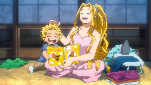 La mère de Toshinori Yagi était une personne incroyable. Aimante, attentionnée et résolue à faire en sorte que son fils puisse s’en sortir. Malgré un contexte apocalyptique où All For One semait la terreur à tout va. « Si on se retourne sur le chemin accompli, tout devient plus clair ». Ici, en l’occurence, le trésor que constituent ces souvenirs fonda l’origine de All Might. « C’est toi, Maman, qui a pu faire en sorte que je devienne celui que je suis aujourd’hui ». Pourquoi se retourne t-on sur le chemin accompli lorsqu’il est trop tard ? Probablement parce que l’être humain a tendance à négliger ce qui lui est acquis. Jusqu’à ce qu’il ne le soit plus. […] « Tous tes jouets sont inutiles » affirme un All For One redevenu adolescent. « Tu te prends pour qui, morveux ! » réplique All Might avant que ne s’abatte sur lui un poing dévastateur. « Quelle triste vision… » se lamente faussement AFO. « Tu as perdu ton sourire, ton pouvoir, ton espoir… Tu rampes à terre tel un vermisseau et je me réjouis de t’achever dans ce triste état ! ». Mais avant qu’il ne put asséner le coup de grâce, son corps s’immobilisa. « Que… ». « Le sang rouge » déclare l’ancien chasseur de héros. « Je n’arrive plus à bouger ?! ». « Il l’est pour tout le monde. Monstres inclus ».