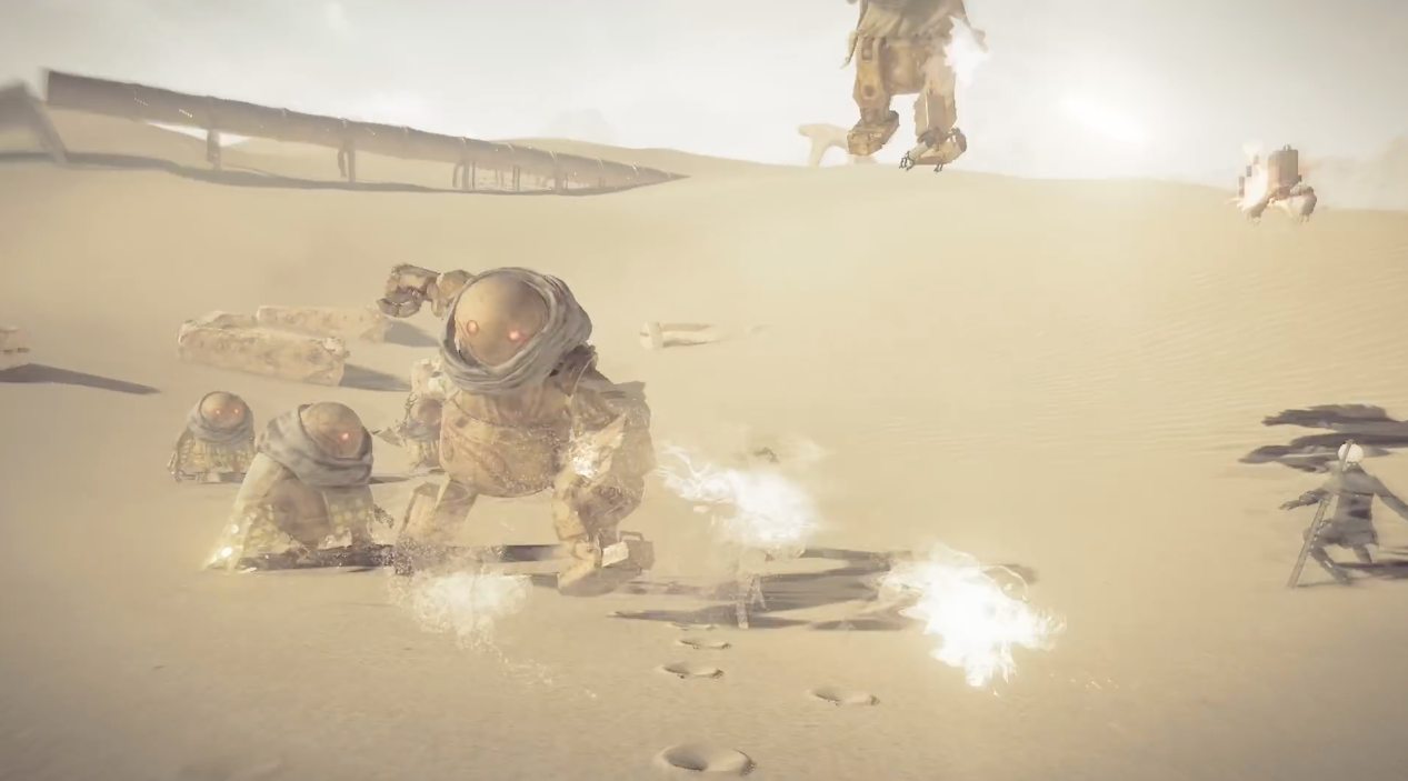 Par contre, j’avoue ne pas être hyper hypé par ce Nier Automata ! Le character design est sympa et le système de combat semble au point…mais l’univers n’a pas l’air très travaillé ! Sans compter cette impression de vide >_< Même si je suis intrigué par l’histoire et ce conflit entre humain/androïdes d’un coté et machines meurtrières de l’autre. Lesquelles sont parvenues à conquérir la Terre (╹o╹) D’où l’envoi de l’infanterie androïde YoRHa en vue de repeupler la planète (-‸ლ) À voir…