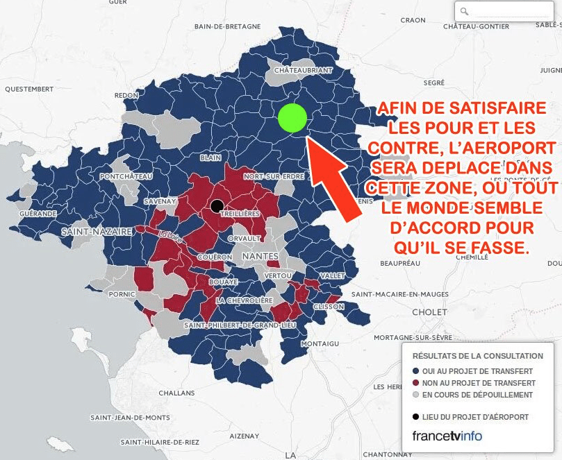 Les travaux commenceront dès l’automne 2016. Au terme d’un référendum portant sur la construction de l’aéroport de Notre-Dame-des-Lances, le « Oui » l’a emporté à hauteur de 55,17% des votes. Sachant que les électeurs invités à se prononcer sur le projet avaient pour condition d’habiter la région de la Loire-Atlantique. Notez que les communes limitrophes au dit-aéroport ont majoritairement voté « Non » u_u Ce qui explique, entre autre, pourquoi les zadistes (ces opposants dont le nom est tiré du terme ZAD – Zone à Défendre-) ont annoncé leur intention de continuer à occuper les lieux.