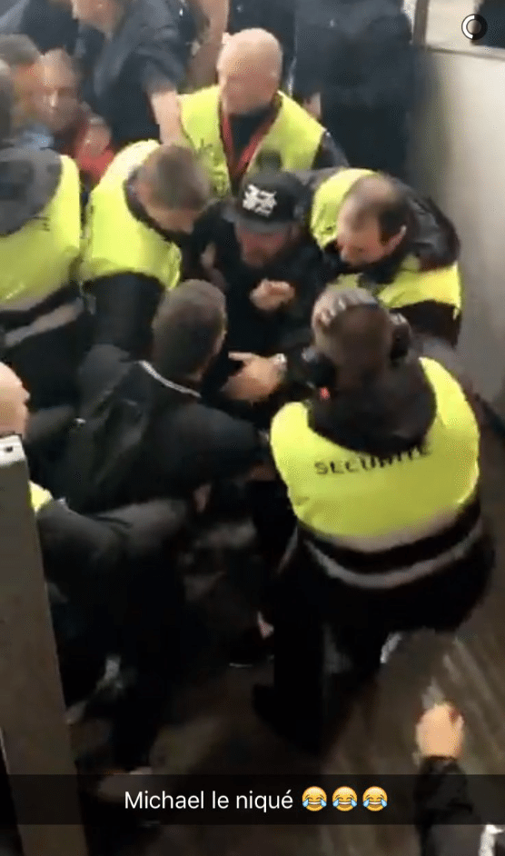 Très vite interpellé, l’humoriste de 42 ans a été expulsé du stade et devrait être interdit de stade pour une durée qui reste encore à déterminer. Comment peut-on continuer à faire le débile et commettre ce genre de geste déplacé voire dangereux alors qu’on a dépassé la quarantaine et qu’on est père d’une petite fille de 4 ans ? Ça me dépasse… Sachant que l’intéressé ne s’est pas privé pour partager les photos de son interpellation sur son compte Twitter. Histoire de faire un maximum de buzz…