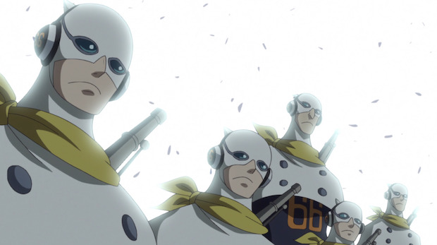Île de Collie Brock, Nouveau Monde : L’Armée Germa 66 est sur le point de mettre fin à un conflit sanglant. « Vous… Comment avez-vous osé tuer ma femme et mes enfants ?! Comment avez-vous pu détruire mon pays ?! » demande en larmes un soldat à l’un des lieutenants-chef. « Bouclier » lance t-il. Une seconde plus tard, l’une de ses unités s’interpose et prend les balles qui lui étaient destinées. « Toi… J’en ai rien à faire de cette guerre ou de ce pays, On a juste été envoyé là pour mettre fin à une bataille minable entre deux pays minables ! Ce qui m’intéresse ? La commission ! » assène le grand frère à Sanji avant d’achever le pauvre homme. Oui. Mettre fin à la guerre par la force et le sang —> Telle est la méthode de la Germa 66. Une méthode qui leur réussit plutôt bien jusqu’à maintenant. « Bien… Il est temps d’assister au mariage du frérot! ».