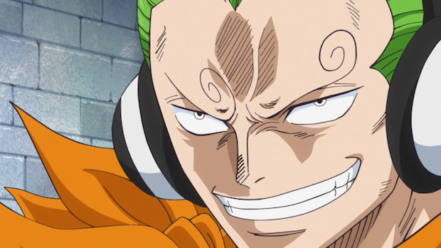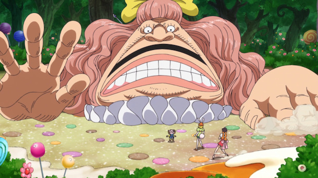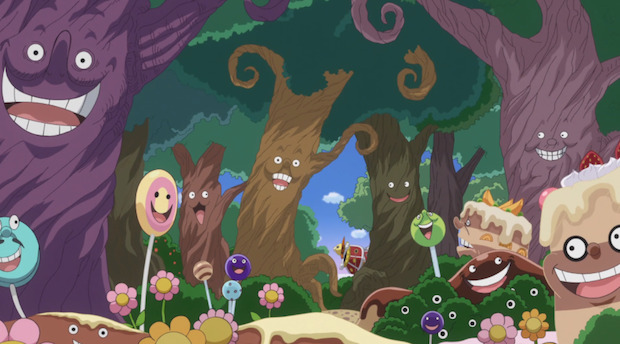 Cette forêt sortie tout droit du Pays des Merveilles xD Avec les arbres et fleurs qui chantent « Tuons-les ! Tuons-les ! ». Creepyyyy .-. Anyway ! J’aime bien le character design du lapin mousquetaire, Randolph ! Soit un pirate appartenant à l’équipage de Big Mom et sous les ordres direct d’une certaine Charlotte Brulée ! Laquelle semble disposer d’un pouvoir empêchant nos amis de sortir de la forêt ! Sans compter ce clone miroir de Luffy qui est parvenu à prendre la place du vrai Luffy… Et bien, ce n’est pas comme ça qu’on va avancer !! Puis le rythme est tellement lent… Espérons que Brulée se fasse vite remettre à sa place ! Histoire qu’on puisse se concentrer sur les retrouvailles familiales de Sanji ! Et si ses deux autres frangins sont aussi cassos que le petit frère Yonji, ça promet… Ne te laisse pas faire, Sanji-kun !!