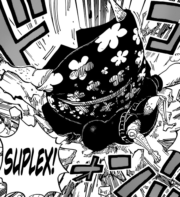 Et si la courtisane N°1 de Wano, Komurasaki, était…la soeur de Momonosuke, Hiyori ? Restée 20 ans dans le passé car dans l’impossibilité de rejoindre son frère et ses servants. Aux dernières nouvelles, la mère, Kozuki Toki, est censée être morte mais quid de Hiyori ? D’ailleurs, Toki est-elle vraiment décédée ? Il me semble que Momonosuke a seulement évoqué le meurtre de son père, Kozuki Oden, il y a 20 ans de ça. Mais pas celui de sa mère… À voir si Komurasaki tombera sous le charme des Udon (nouilles japonaises) de Sanji, ahah. Après que la ravissante O-Toko et son sourire éclatant lui aient vanté les mérites du cuisinier ! Notez que O-Toko est la servante de Komurazaki ! Et que les trois débiles qui ont attaqué le stand à Sanji, Kaku, Kuni et Suke, sont des larbins du Clan Kyoshiro. Ce type qui a des vues sur Komurasaki et que Robin a réussi à approcher en tant que Geisha ! M’est avis qu’il va se prendre une raclée d’ici peu ! Et nous devrions bientôt voir à quoi ressemble ce satané Orochi ! A t-il mangé le Fruit du Serpent ? Peut-être bien que oui, peut-être bien que non !