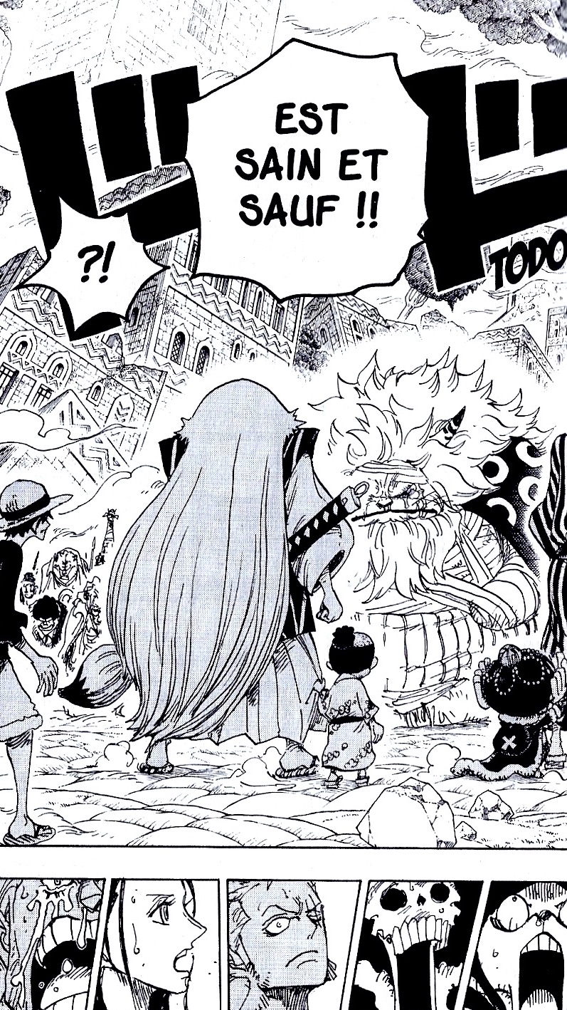 « Chers compagnons, je pars rencontrer une femme. Je vous promets de revenir ». Tel est le contenu de la lettre qu’a laissé Sanji à ses amis avant de partir rejoindre Big Mama. Cela afin…de se marier avec l’une de ses filles ?! Non, impossible ! D’autant plus qu’une telle union signifierait la soumission de l’équipage de Luffy à celui du Yonkou qu’est Charlotte Linlin !! Or, cela, il en est hors de question !! Anyway ! La priorité actuelle est d’en apprendre davantage sur les Minks et la tragédie qui leur est tombée dessus suite à l’invasion du sinistre Jack ._. Mais plus que ça, Luffy et sa troupe sont hâte de faire la connaissance des deux héros protecteurs de l’Île de Zo ! Le Seigneur Diurne, Duc Caborage, et le Seigneur Nocturne, Maître Chapivère. « Asseyez-vous, ça va être une longue histoire ».