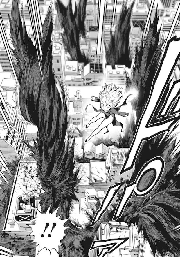 Du coté des trois autres monstres, Agrégation d’un coté auquel fait face Tatsumaki, La Grande Famille des Ténèbres qu’affronte Genos et, enfin, Machine God Miller qui se retrouve à affronter Suiko, rien n’est encore joué. Agrégation, notamment, semble avoir étendu ses insectes bien plus profondément dans la ville P qu’on ne le pensait. Mais bon, j’imagine que Tatsumaki va s’en sortir comme une cheffe malgré son entomophobie. C’est surtout du coté de Genos et Suiko que le doute persiste. Pour l’heure, Genos ne nous a pas encore montré qu’il pouvait affronter seul une menace de type S. Mais il a beaucoup évolué depuis alors j’ai foi ! Quant à Suiko, on ne connaît pas encore l’étendue de sa puissance comparé au talent de son frère, Suiryu. Elle a l’air très confiante, en tout cas ! Et elle pourrait profiter du fait que Machine God Miller la sous-estime fortement. Allez, la suite ! Un bon chapitre axé action qui fait plaisir, ahah.