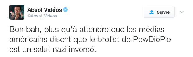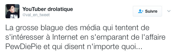 Oui, l’intention de PewDiePie (dénoncer l’absurdité du monde en montrant que des personnes sont prêtes à ce genre de chose pour de l’argent) est louable ! Mais l’exécution est maladroite è PewDiePie lui-même en a conscience et s’en excuse. Ajoutez à cela le fait que certains médias aient du mal à encadrer les Youtubeurs et vous obtenez un lynchage médiatique quelque peu injustifié ! Par exemple, des gros titres du genre —> « PewDiePie viré par Disney pour des vidéos antisémites ». Ok. Autre phénomène lamentable —> Le fait que les gros Youtubeurs soient sans cesse renvoyés à l’argent qu’ils gagnent en faisant des « vidéos débiles ». Un peu comme s’ils étaient les parangons d’une génération de dégénérés plaçant le superficiel et le néant comme mètres-étalon de la valeur sociale. Réducteur ? Oui, un peu ! Quoiqu’il en soit, plus les années passent, plus Internet s’étend et plus il devient nécessaire de faire gaffe à ce que l’on dit ! Sous peine de se faire décontextualiser la gueule par des personnes un brin malhonnêtes. Triste !
