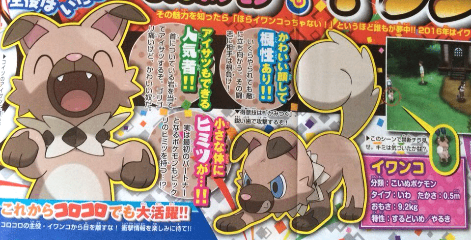 L’autre Pokémon star, c’est Iwanko le chien caillou ! De type roche, il semblerait que celui-ci ait un lien avec les trois starters Brindibou, Flamiaou et Otaquin ! Hm… En tout cas, il a l’air assez cool \^o^/ Il fera peut-être partie de ma team de départ ! Avant de se faire jeter comme un malpropre par un Pokémon plus stylé ._. Oui, je suis un horrible dresseur ! Anyway, notez l’intégration des deux formes de Zygarde à même Soleil & Lune —> Adieu, Pokémon Z ! J’aurais cru en toi jusqu’au bout T_T