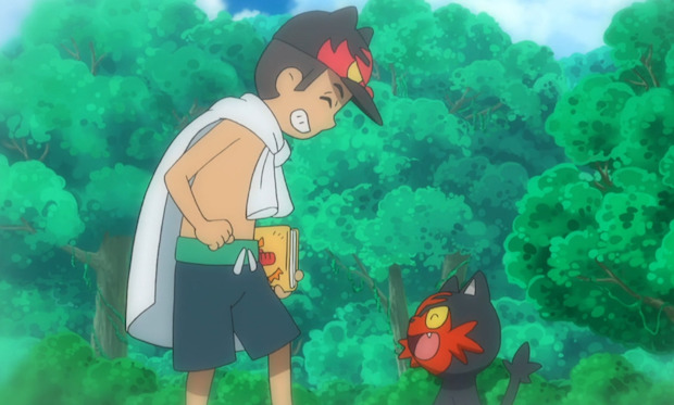 Mais que fait Celebi, la Fée des Forêts, à Alola ? Visiblement, l’entrainement de Sacha l’intrigue ! En particulier la bêtise de ce Brindibou qui est parvenu à s’auto-attaquer avec ce jet de pierre étrange. « Ne sois pas si pressé ! » l’engueule Sacha. « C’est bien d’être motivé mais il faut savoir prendre son temps parfois ». Quand bien même la Ligue D’Alola commence très bientôt ! Du coté de Pimprenelle, celle-ci montre avec enthousiasme une photo trouvée alors qu’elle faisait un peu de ménage. « Mais c’est moi ?! » crie Euphorbe. « Oui ! Quand tu étais gamin ! ». Lui et Flamiaou. Que de souvenirs ! « Tu avais quel âge ? » lui demande Pimprenelle. « 5 ans, je crois ! ». Voilà qui ne le rajeunit pas ! « Ce journal dans lequel tu as trouvé la photo… » l’informe Euphorbe. « Je l’emmenais partout sur moi tellement je l’appréciais ! ». À l’utiliser comme manuel lors des combats de Pectorius-san. Sans oublier Flamiaou qui l’accompagnait chaque fois. Le voilà désormais devenu un majestueux Félinferno. « À ce propos… » se dit Euphorbe. « Il serait peut-être temps que je révèle ma double identité ».