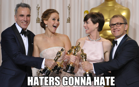 Outre la cérémonie, déjà surprenante en soi niveau palmarès, c’est son déroulement même qui aura marqué les esprits de par le nombre considérable de mini-scandales ayant émaillé l’évènement. Le premier d’entre eux aura été la tenue d’Anne Hathaway un tantinet moulée puisqu’on voyait apparaitre ses tétons de manière plus ou moins flagrante. Ce qui, dans une Amérique parfois assez puritaine, a du mal à passer.