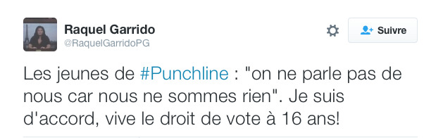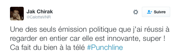 Sans compter les présentateurs parfois au chou face à la préparation de leur interlocuteur (*tousse* Nicolas Sarkozy *tousse*) <_< Ici, pour Punchline, plusieurs thèmes clé tels que le Droit du Travail ou encore l’immigration ont été abordés avec suffisamment de clarté pour être compris. Et si tous les débats politiques se faisaient avec cette même volonté citoyenne de penser aux autres sans arrière-pensée, on avancerait peut-être un peu plus ! J’espère que Laurence a prévu d’inviter Alain Juppé xD Ça pourrait être intéressant de le voir éclaircir sa pensée auprès d’un électorat qui n’est pas forcément le sien. Tel est d’ailleurs l’objectif de Punchline —> Inciter le plus de jeunes à voter ! Ou plus généralement convaincre tous ceux qui font le choix de ne pas voter que cela reste important. Même s’il s’agit au bout du compte de voter blanc ! Affaire à suivre…