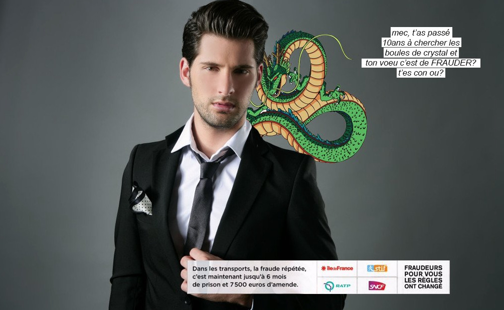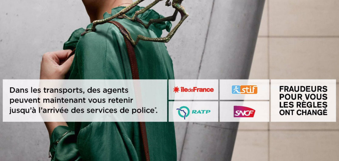 Était-ce vraiment nécessaire ? Telle est la question… Affirmant perdre plus de 366 millions d’euros par an à cause des fraudeurs, la RATP/SNCF vient d’annoncer le déploiement d’un vaste plan anti-fraude. Objectif –> Réprimer encore plus sévèrement quiconque oserait jouer avec la loi (-‸ლ) Par exemple, il m’est arrivé une fois d’indiquer une fausse adresse et un faux nom histoire de ne pas payer l’amende de 50 euros (hehe). Désormais, les agents pourront m’obliger à attendre l’arrivée de la police histoire qu’ils vérifient les informations données -_-‘ Sachant que la déclaration intentionnelle de fausses informations est punie de 3750 euros + deux mois d’emprisonnement (lolilol). Autant vous dire que la RATP n’est pas contente et qu’elle compte bien nous le faire savoir -_- D’où cette campagne anti-fraudeurs de la mort qui tue…
