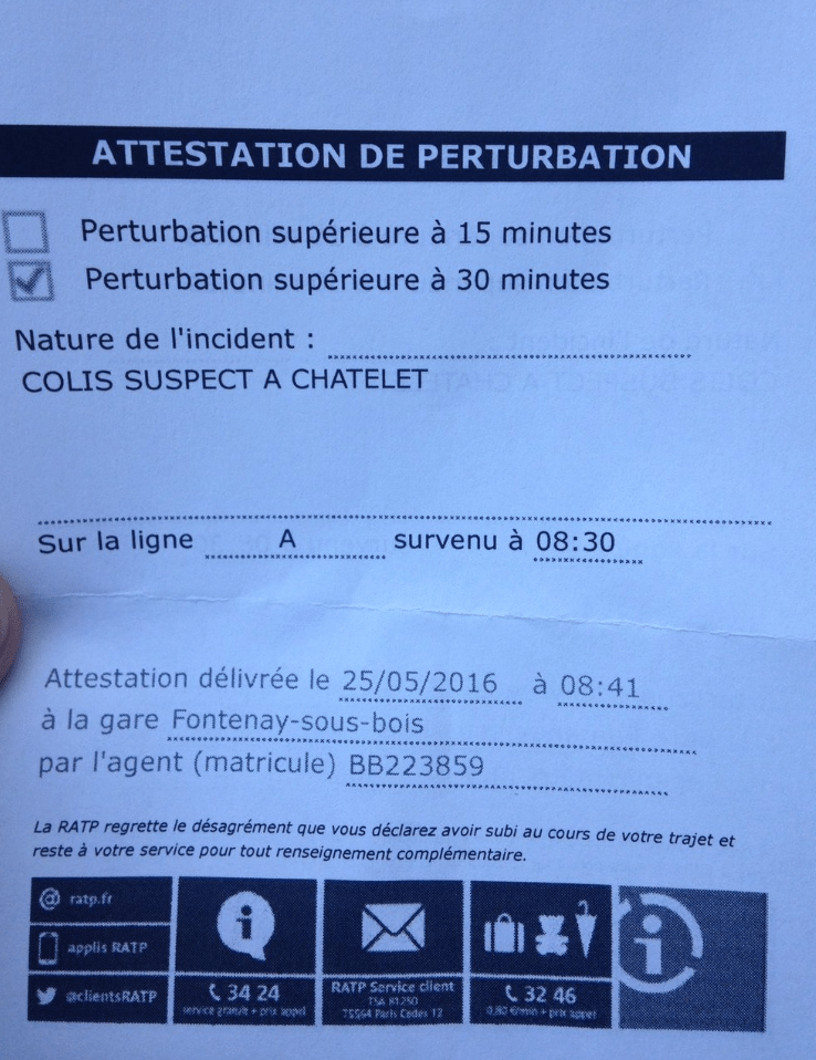 Depuis 9 heures du matin, la totalité du trafic sur le RER A est quasiment paralysé. La faute à une somme de facteurs qui font mal. D’abord la grève des cheminots annoncée pour aujourd’hui et demain en raison du maintien de la Loi Travail. Ensuite le fait que beaucoup de Français victimes de la pénurie d’essence soient descendus dans les métros pour aller au boulot. Enfin —> un beau colis suspect à la station Châtelet-Les Halles histoire d’apporter le chaos sous terre. Et autant dire que ça n’a pas loupé xD