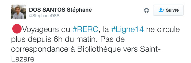 Il y aurait apparemment une rame en feu… Et la ligne 14 ne marcherait pas du tout !! De Bibliothèque à Saint-Lazare ._; Ce mardi matin de l’enfer… Autant les problèmes des RER sont inscrits dans le quotidien des franciliens, autant les problèmes sur la ligne 14 (automatisée) sont extrêmement rares ! Et heureusement —> Non seulement il s’agit de la meilleur ligne parisienne (trains réguliers, très peu de retards) mais elle dessert des trajets très importants à partir du tronçon Chatelêt-Gare Saint-Lazare ! Évidemment, la RATP n’a prévenu personne si ce n’est signaler quelques « difficultés de circulation » sur le RER C. Alors que concrètement, rien ne marche xD