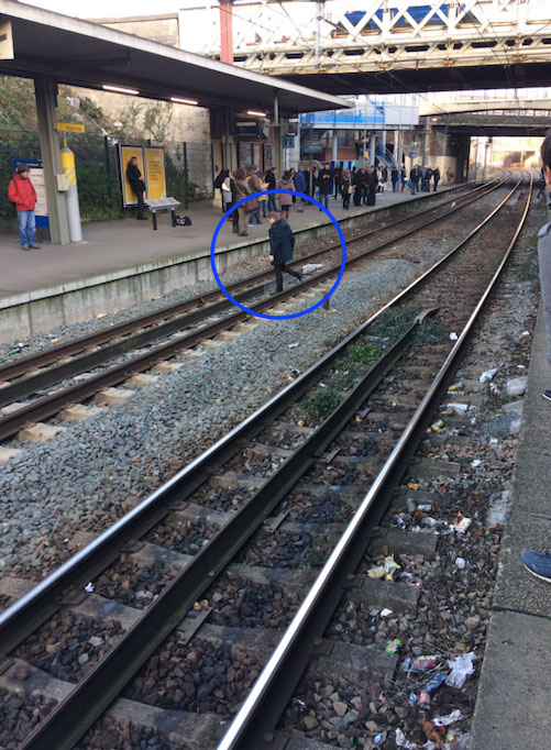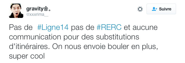 Au final, les utilisateurs sont dans une rage noire -_- Sur Twitter, bien sûr, mais aussi sur Facebook où nombre de mes contacts s’apprêtent à se faire hara kiri. J’en profite pour faire une confession –> Écrire des news sur les pannes de RER alors que je suis tranquillement assis dans ma chambre en train de boire un café est assez sympathique ( ▔∀▔ ) Il n’empêche —> Pourquoi autant de soucis avec ces maudits RER ? Il n’y qu’en France qu’on voit ça >_< Il serait peut-être temps d’automatiser le RER C et ses consoeurs ! Puis mettre des façades de quai vu que certains passagers s’amusent à traverser les quais comme des imbéciles (voir photo ci-dessous)… Allez, courage ! Ça ira mieux demain… Ou pas>_<‘