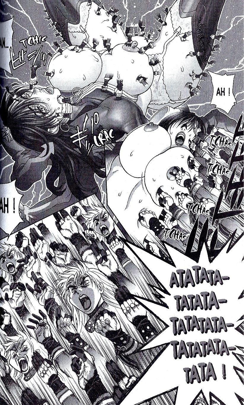 Or ici, surprise, Hagiwara s’est dit « Fuck it ! Vu que j’ai plus d’histoire et que je fais n’imp, autant s’éclater ! » et a dessiné un tome entièrement hentai. Oui oui, le combat entre Porno Diane (déjà le nom…) et Dark Schneider n’est qu’une vague prétexte pour nous délivrer, encore une fois, des scènes de cul à outrance. Entre cumshot, léchage de nichons, cunnilingus, et anal : du grand Bastard comme on l’aime.
