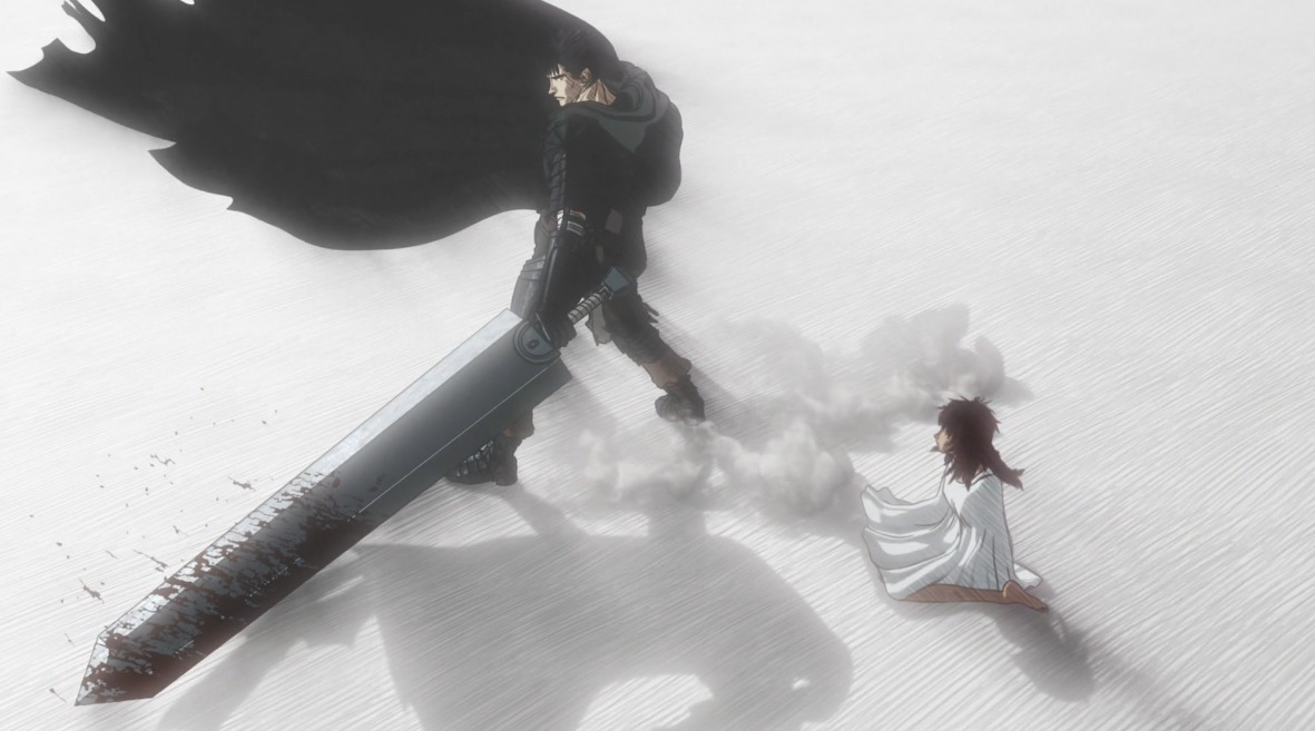 Cette arrivée tonitruante de Guts <3 Toujours avec la musique bien badass qui va avec *o* Et Isidro n’est pas aussi inutile que ce que je ne l’aurais pensé ! Bien au contraire —> Sans lui, Nina et Casca se seraient fait tuer derechef ! Enfin, plutôt Nina vu que Casca dispose de son étrange ange-gardien ._. Je me demande s’il pourrait s’agir de l’enfant né suite au viol perpétré par Griffith… Anyway ! Bon épisode (ça devient une habitude) avec un Guts toujours aussi majestueux (-‸ლ) J’ai cru que Isidro allait lui voler la vedette pendant un court moment mais non xD Guts sauve Casca d’une manière aussi majestueuse que grandiose *o* Allez, la suite !!!