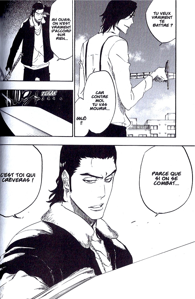 Finalement, Ichigo parvient in-extremis à terminer sa cession de combat : au grand plaisir de Tsukishima qui l’invite dès lors au combat. Mais Ginjô ne l’entend pas de cette oreille et estime qu’Ichigo n’est pas encore prêt pour un adversaire de ce calibre. C’est donc lui qui être son adversaire : avec comme tâche très simple de mettre un terme à sa vie. Car Ginjô n’est pas homme à prendre à la légère, bien au contraire.