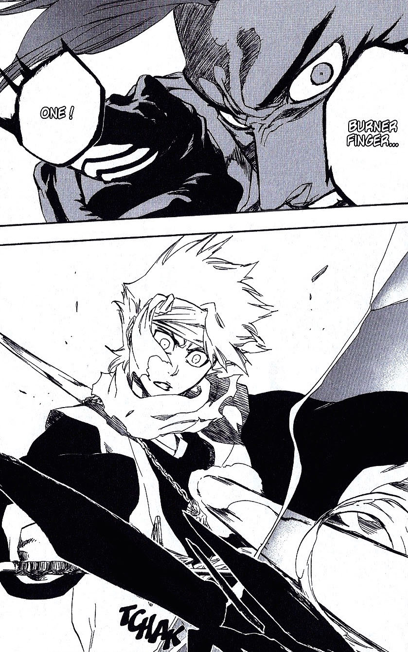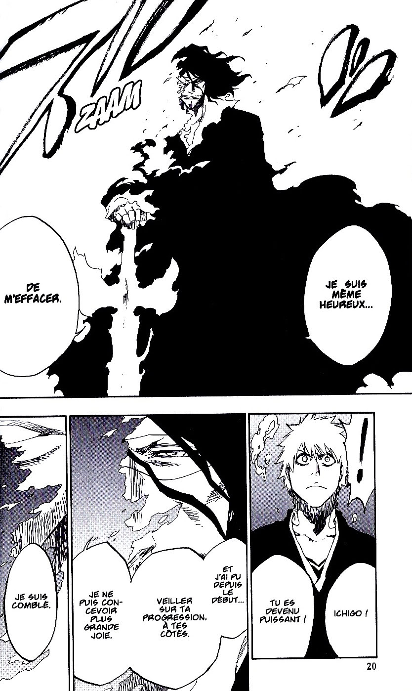 Je ne sais pas si je me suis habitué à la médiocrité de Bleach ou bien si je me focalise dorénavant sur ses bons cotés (qualité du dessin et du découpage) mais lire ce tome 61 fut plutôt agréable. Peu importe que les nouveaux ennemis, à savoir les Stern Ritter *Insérez une lettre de l’alphabet*, soient random as f*ck mis à part Yhwach (Stern Ritter A), Haschwalt (Stern Ritter B) et, à la limite, Bazz-B (Stern Ritter H).